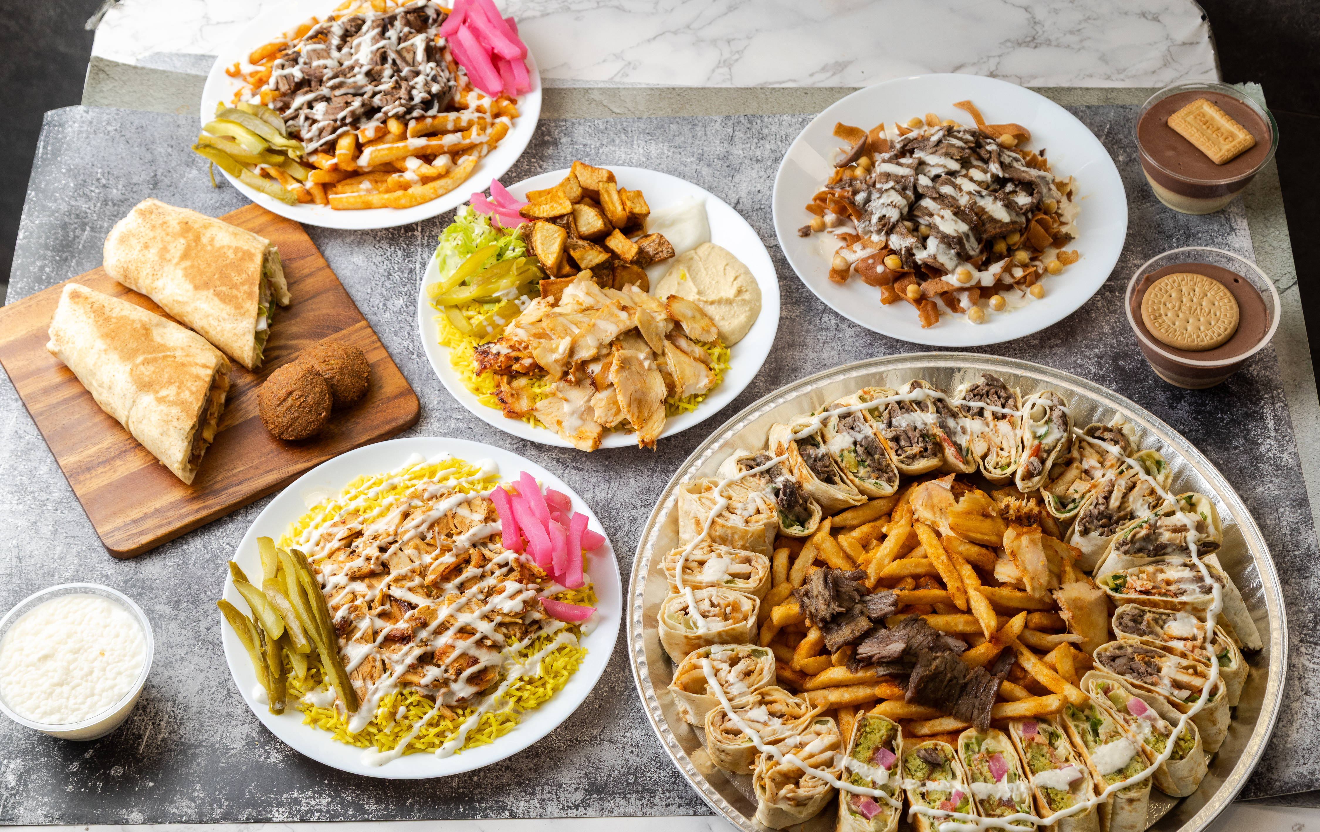 Our flavours are inspired by Syrian kitchens where food was made with patience, pride, and purpose. We keep it simple: fresh ingredients, bold seasoning, and recipes passed down through family - served fast,